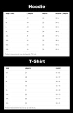 Shirts and hoodies available size Small-5XL, direct to garment printed on 100% cotton. Hoodies are Gildan 18500, available S-5XL, 50% pre-shrunk cotton, 50% polyester with a large front pouch pocket and drawstrings in a matching color.
